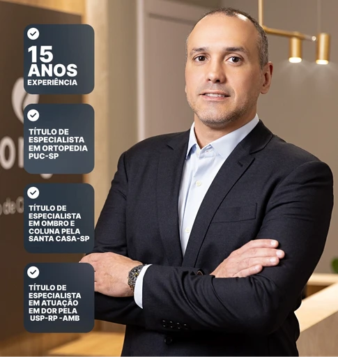 Formado em Ombro na Santa Casa-SP e mais de 15 anos de experiência, o Dr. Fábio atua como referência em cirurgias do ombro e tratamentos regenerativos.